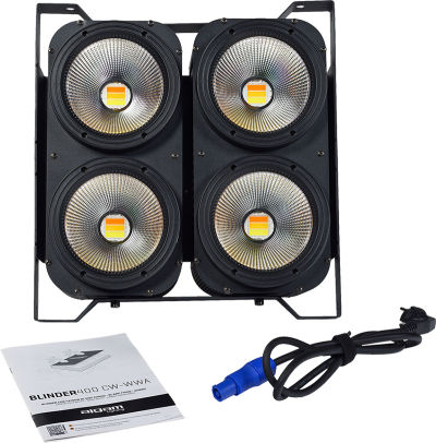 The Algam Lighting BLINDER 400 CW-WWA is a powerful and versatile stage lighting fixture designed to deliver an intense, eye-catching blinder effect. Equipped with four 100 watt COB LEDs, it produces a wide range of white tones, from crisp cool white to rich warm amber, closely replicating the look and feel of traditional halogen lamps while offering the efficiency and reliability of modern LED technology.