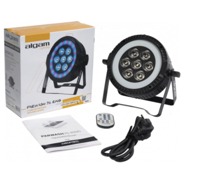 More than just a PAR Wash, the PARWASH76-RING is an invitation to creativity. With just 21 cm diameter, 10 cm thickness and a tiny kilogram on the balance, the PARWASH 76 RING is easy to install, even in small spaces, thanks to its silent passive cooling. Ideal for any private event or indoor performance, it features 7 x 6W RGBW LEDs offering nuanced, vibrant colors, combined with an RGB LED ring creating rotating animations or fixed colors to generate a halo around the main beam. Versatile, it features an automatic mode, a music detection mode and a DMX mode allowing control by DMX remote control, in addition to the infrared remote control supplied. The PARWASH 76 RING is easy to install, thanks to its dual bracket for easy floor installation, and its passive cooling, which generates neither unwanted noise nor excessive heat during indoor performances or events.