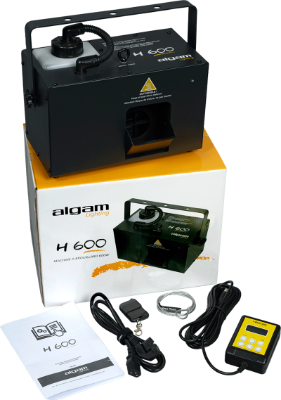 Given its 600W power, the H600 is a surprisingly compact haze machine that will enhance your light shows with its dense and steady haze production. Its robust steel construction, its large 1.2-litre tank and its record heat-up time of 40 seconds make it the ideal haze machine for private parties or all events in medium-sized rooms. The H600 offers different operating modes and numerous settings (trigger intervals and durations, auto timer, smoke volume output, fan speed), all DMX controllable or directly from the wired remote control with LCD display. For an optimal result, Algam Lighting recommends using haze fluid.
