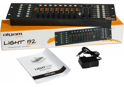 The LIGHT 192 is a DMX console for personalized remote control of your led projectors, moving heads, lasers or smoke machines. With its 192 channels for controlling an installation of up to 12 fixtures, this DMX console lets you realize all your lighting ideas through its 16 available channels per fixture. A perfect ally for your parties, the LIGHT 192 also features 30 banks of 8 programmable scenes, for a total of 240 memorized scenes, 6 chase programs with adjustable speed and fade time, and 8 faders for precise control of your setting preferences. Finally, this console comes in a rack-mountable 19" format for perfect integration into your setup.