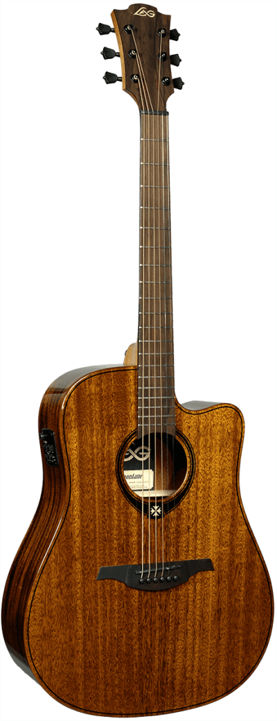 Crafted entirely from khaya, an African mahogany renowned for its tonal warmth and stability, this electroacoustic model delivers a rich and distinctive voice. With a solid khaya top paired with khaya back and sides, it produces mellow bass, a full and expressive midrange, and delicate, articulate treble, resulting in exceptional tonal balance.